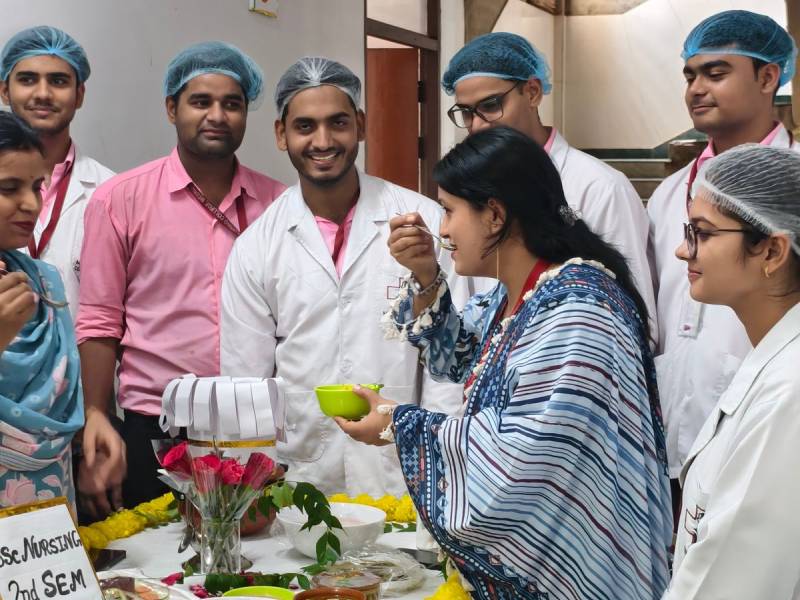 As a part of the academic and practical requirements under the subject of Nutrition, a Nutrition Programme was organized by the B.Sc. Nursing 2nd Semester students of Meerut Nursing College on 12th July 2025. The purpose of the programme was to enhance students' practical knowledge about the preparation and planning of balanced diets, community awareness, and demonstration of nutritious food for different age groups and conditions.