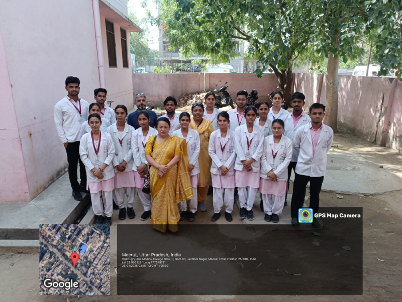 An educational visit to the Department of Forensic Medicine at LLRM Medical College, Meerut, was organized by NCRIMS Department of Forensic Medicine Under the guidance of Dr. Virender Kumar chokkar, HOD of Forensic Science to provide Nursing Students with practical exposure to forensic science and post-mortem examination procedures. The visit took place on 23 April 2025, afternoon from 1 pm to 4 pm and was attended by BSc N V SEM Batch 2022-23 under the supervision of Prof. Monica and Mrs. Anita Prakash.
