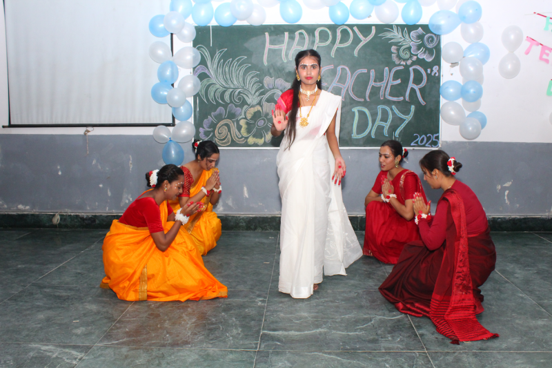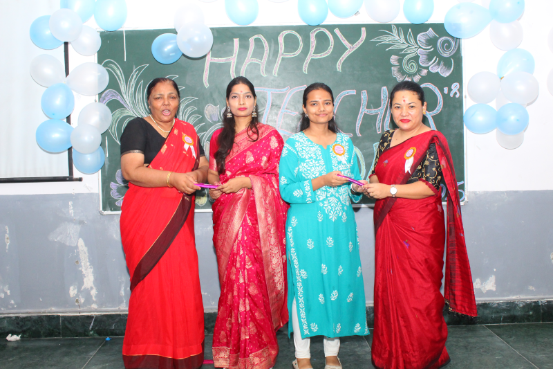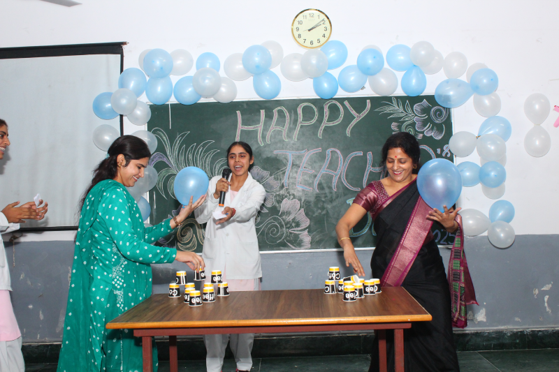 The program was initiated with the Saraswati Vandana by the girls of bsc 1st semester and various cultural activities like dance song poetry shayari are performed by the students. Mr Nitin Yadav and Khushi of b.sc first and second year respectively delivers beautiful speech. Between program student arranged refreshment for the respected faculties as well as students. In between various games like cup building, tongue twister, corporate fun and more are held for faculties in which Ms. Palak Chauhan and Ms. Ashi Rawat were the winners. All the teachers enjoyed and appreciated the program. At the end students distributed the gift to the respected teachers and vote of thanks.