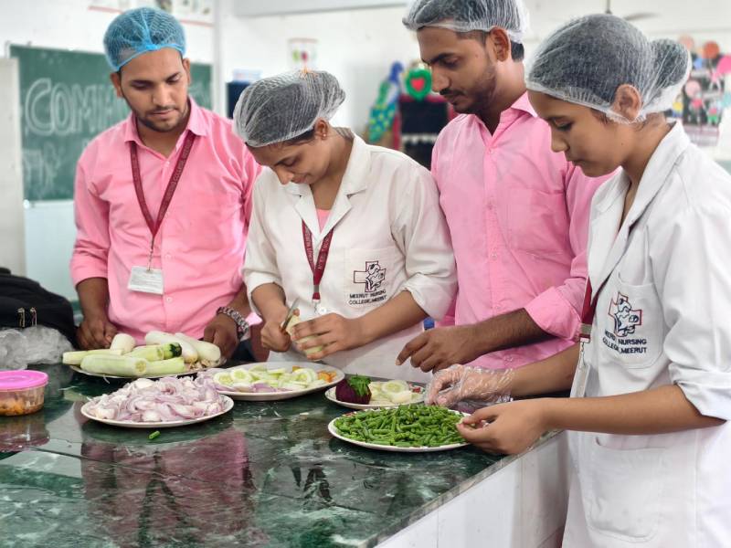 The Student of GNM 1ST Year, Meerut Nursing College was conducted 2 days Nutritional Program on 20th& 21th June 2023 in the nutritional lab under the Guidance of Prof. Thounaojam Monica, Principal, Prof. Krishnamoorthy, Vice-Principal, Mr. Nikhil, Associate Professor, Mr. Hans Raj, Associate Professor of Meerut Nursing College, Meerut and under the supervision and direction of Mrs.Anshu Sharma & Ms.Preeti Gloriayas Nursing Tutor, Meerut Nursing College, Meerut.